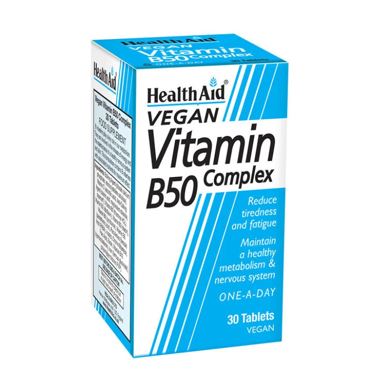 Το Vitamin Β50 Complex της HealthAid είναι σε ταμπλέτες βραδείας αποδέσμευσης, ώστε να απελευθερώνουν σταθερά τα θρεπτικά συστατικά κατά τη διάρκεια της ημέρας και να ελαχιστοποιείται η απώλεια των υδατοδιαλυτών βιταμινών. Κατάλληλες για όσους έχουν ευαίσθητο στομάχι αλλά και για άτομα με απαιτητικούς ρυθμούς ζωής, για όσους ακολουθούν υποθερμιδικές δίαιτες αλλά και για ηλικιωμένους, στους οποίους τόσο η παραγωγή όσο και η απορρόφηση των βιταμινών αυτών έχει μειωθεί λόγω ηλικίας.