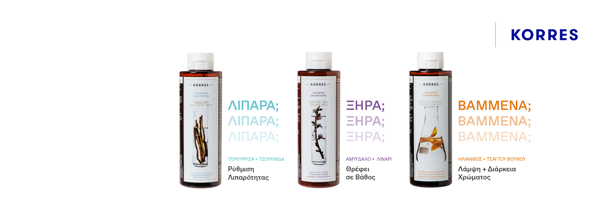 Τα σαμπουάν Korres βασίζονται σε εξελιγμένες φόρμουλες -χωρίς σιλικόνες. Ενισχύουν τη φυσική άμυνα του τριχωτού και εξασφαλίζουν την υγιή εμφάνιση των μαλλιών, μέσα από κλινικά αποδεδειγμένη δράση: πιο απαλά, λαμπερά μαλλιά με υγιή όψη για 9 στις 10 γυναίκες με ξηρά ή βαμμένα μαλλιά, σε μόλις 14 ημέρες*. In vivo μελέτη** H σειρά καλύπτει κάθε πιθανή ανάγκη περιποίησης του τριχωτού της κεφαλής: ενυδάτωση, επανόρθωση, ενδυνάμωση τρίχας, λάμψη, ελαστικότητα, εύκολο χτένισμα, “ασπίδα” από περιβαλλοντικές επιθέσεις και άλλους εξωγενείς παράγοντες, όπως οι τεχνικές διεργασίες. Ο σχεδιασμός των προϊόντων βασίζεται στην εξαιρετική πρώτη ύλη! Η Κρήτη είναι το πιο γόνιμο νησί της Ελλάδας, με μεγάλη παράδοση στην καλλιέργεια αρωματικών φυτών. Τρία από αυτά, καλλιεργημένα με βιολογικές μεθόδους, εμπλουτίζουν τη σύνθεση των προϊόντων περιποίησης μαλλιών KORRES. Η Μαντζουράνα, ένα φρύγανο που καλλιεργείται στα εύφορα εδάφη του Αρκαλοχωρίου, και δυο από τα πιο γνωστά ενδημικά φυτά της Ελλάδας, τα οποία βρίσκονται αυτοφυή μονάχα στα ορεινά της Κρήτης: το Δίκταμο ή αλλιώς Έρωντας, το πιο διακεκριμένο βότανο της κρητικής λαϊκής θεραπευτικής, και το τσάι του βουνού ή Μαλοτήρα από τις βουνοκορφές στα διάσημα Λευκά Όρη.